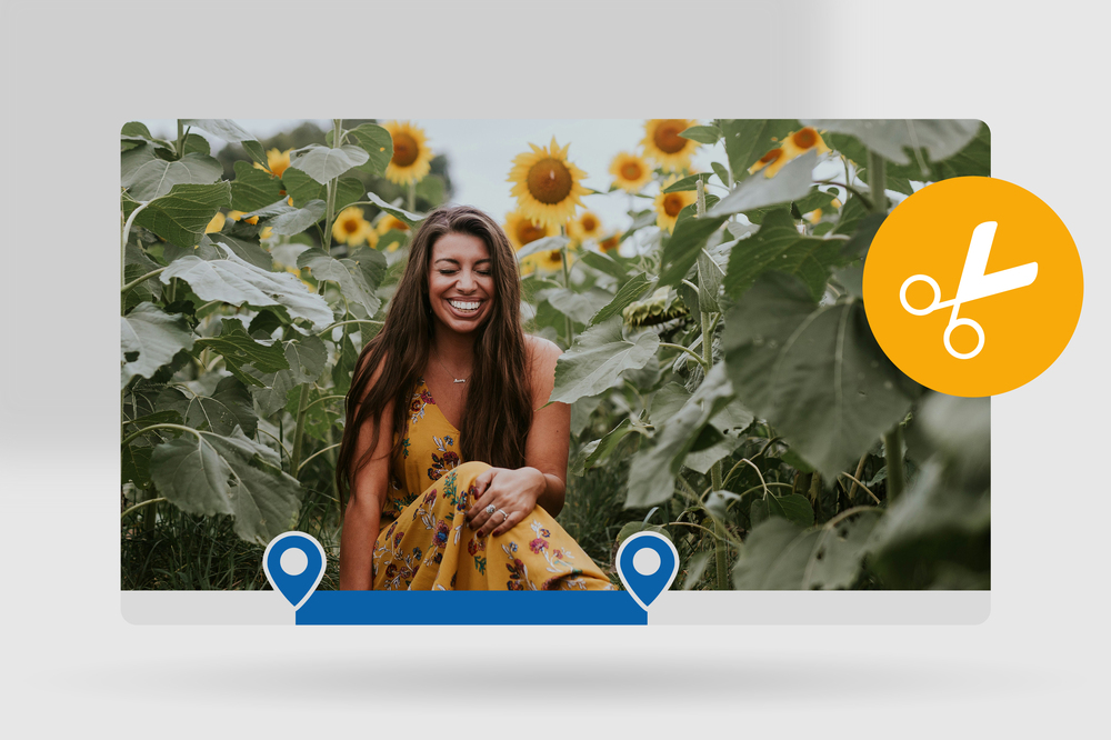 Open the playlist containing the video and simply set an in-point and an out-point in the player. For fine-tuning, you can move both points freely using drag & drop to precisely define your selection.