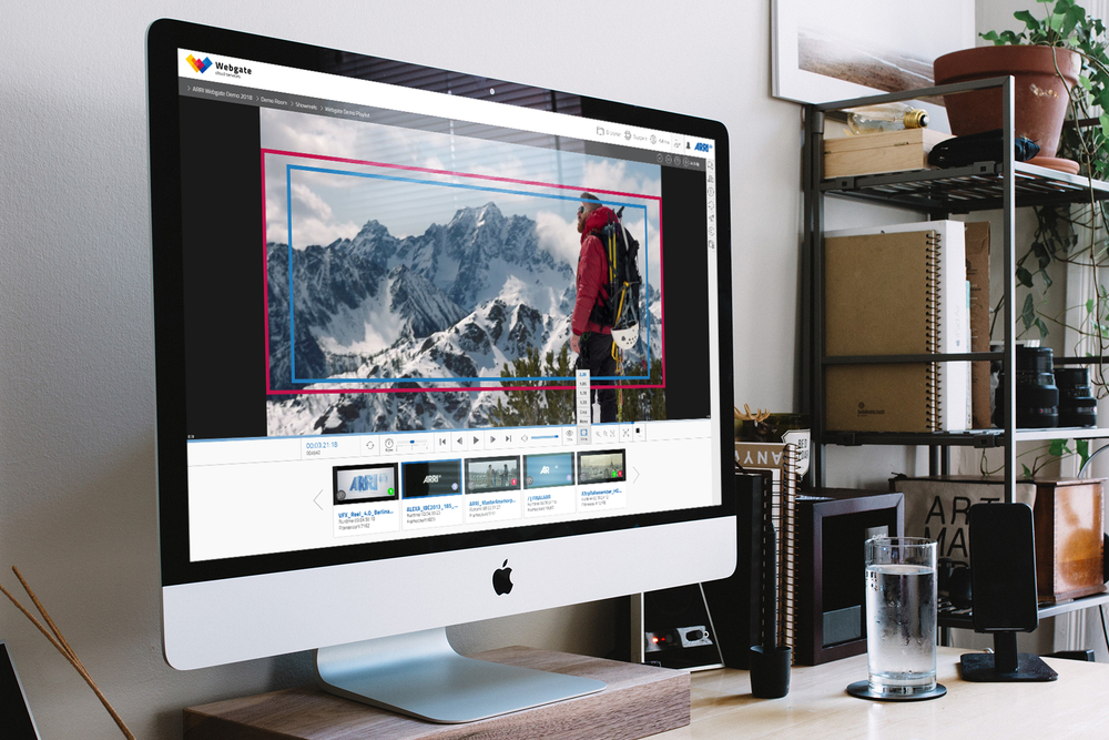 The ARRI Webgate Player now also has a video matte. The image formats 2.39, 1.85, 1.78 and 1.33 can be displayed as video overlay. In addition to the image format in red, the 5% title-safe area is also displayed in blue. So you can quickly control the image format of your video and the positioning of titles and captions. As an alternative to the lines you can also activate a crop, which surrounds the image formats with a black border.